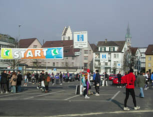 ![]() Zum Start reihen wir uns alle in einer langen Linie auf |