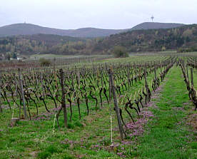 Oberhalb der Weinberge sehen wir die Höhen des Pfälzer