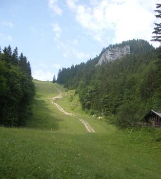 springe fröhlich auf dem Bergrücken nach links weiter. Eine Hütte weiter