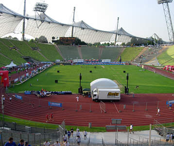 Im Münchner Olympia-Stadion etwa eine Stunde vor dem Startschuss |