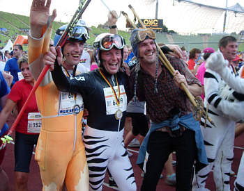 Auch die laufenden Skifahrer sind ohne Hitzeschlag ins