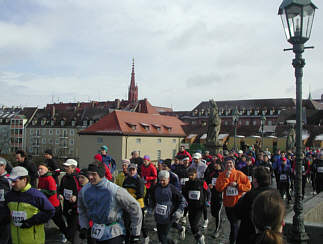 ![]() Die ersten Meter des Gedächtnislaufes auf der Alten Mainbrücke von Würzburg |