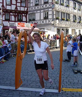 "Lauf zu, das wird ne gute Zeit!". Das gibt ihm noch einmal nen Schub. Wie