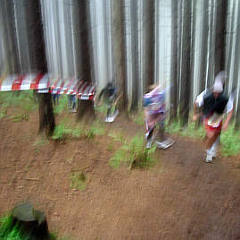 jogge, wie ein Walross schnaufend, in kleinen Schritten den steilen Waldhang hoch.