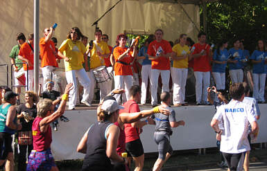 Laufbegeisterte. Vor dem Eintritt in den Start-/Zielbereich verabschiedete