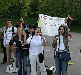 Coubertinplatz, wo Zuschauer und Musikbands für Stimmung sorgen. |