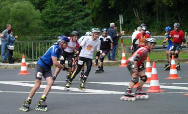 Einige Kilometer weiter erreichen wir die Wende nahe der Sachsenmühle, wo sich wieder etliche Zuschauer angesammelt haben. Meine Frau Gaby leistet hier zusammen mit ihren Kollegen des Forchheimer Roten Kreuz Dienst zum Wohl der Läufer. Da es Gott sei Dank kaum Fälle gibt, wo sie helfend eingreifen müssen, hat meine Frau genügend Zeit Fotos an der Wende zu machen, von denen ein paar hier zu sehen sind.