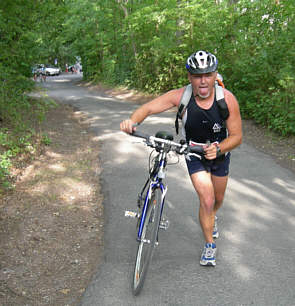 schiebt hier sein Rad und streckt schon mal demonstrativ seine Zunge