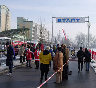 bissigen Kälte halten ein paar Zuschauer im Ziel durch |