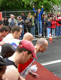 ![]() Anspannung kurz vor dem Start des Würzburg Marathons 2006 |