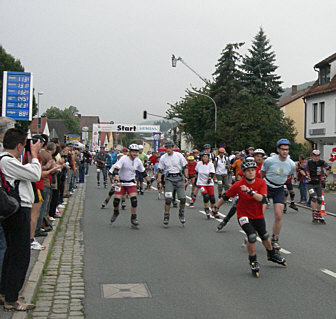 ![]() Start des Hauptfeldes der Skater beim Fränkische Schweiz Marathon 2007 |