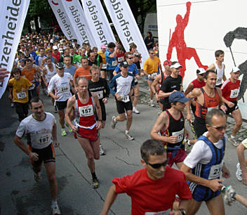 Startlinie und laufe die ersten drei Kilometer zusammen mit Erwin.