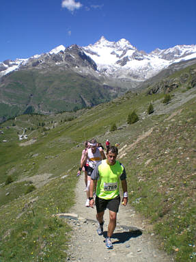 ansteigende Bergkette, vor allem aber in Richtung des Matterhorn. Immer