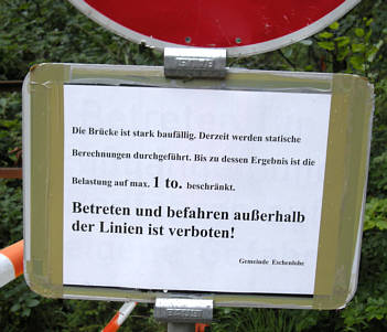 Gruslig ist die marode Brücke am Eingang der Eschenlaine in