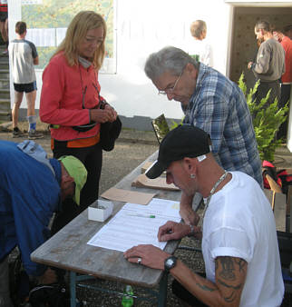 meisten der Läufer versammelt haben. Das Abholen der Startunterlagen, die