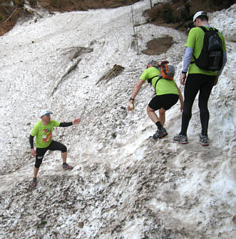 Hier sollte man lieber nicht abrutschen. Unser Bremsläufer sichert die Lage. |