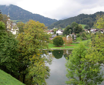 beim Warmlaufen das schöne Alpendorf. Besonders beschaulich sieht der