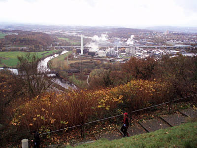 abwärts. Von hier oben aus hat man eine weite Aussicht über das Ruhrgebiet. Dann