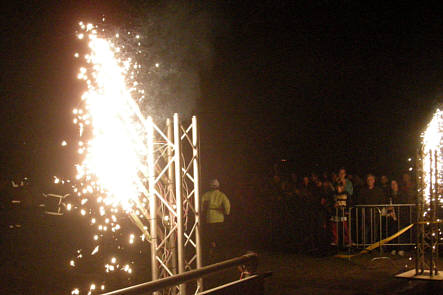 Am tollsten wird das Feuerwerk, als wir schon den Sportplatz