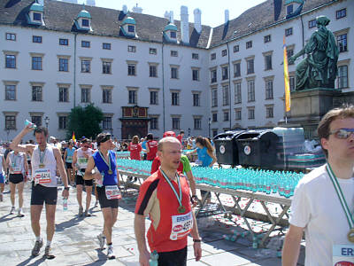 Das lauwarme Wasser im von den Zuschauern abgeriegelten Innenhofes der Hofburg