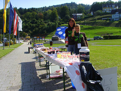 Verköstigung durch die Helfer der Verpflegungsstelle am Fuße des Aussichtsturms.