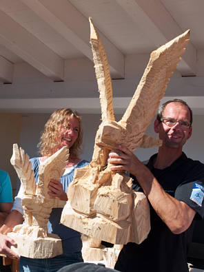 Waldstadion. Auch die Riesenschnitzereien für die Sieger sind mittlerweile