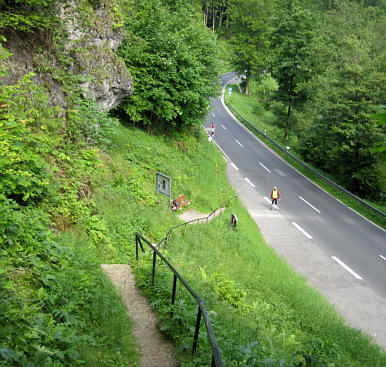 Von der Riesenburg geht es sehr steil bergab ... |