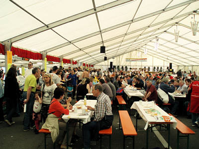 Im großen Festzelt werden außer den üblichen Würstchen auch Kartoffeln mit Quark