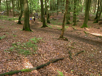 Nun folgt ein kurzer, steiler Trail durch den Wald. Was auf dem Foto so flach