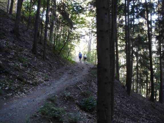 Wir laufen erst mal auf schönen Wirtschafts- und Waldwegen stetig bergauf.