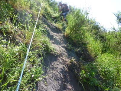 kurzer Zeit auf die ersten knackigen Trails. Ein Hang steil hinab, ein steiler
