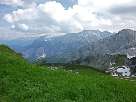 vor mir zur Bergstation der Alpspitzbahn. Das Panorama ist grandios, die steilen