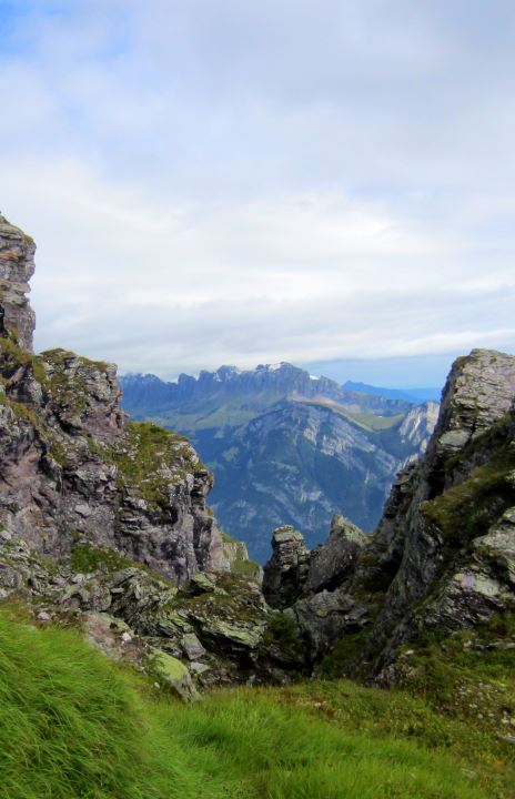 Ich kenne vom letzten Jahr die Strecke teilweise und weiß daher in etwa auf was ich mich eingelassen habe. Daher renne ich zwar auf den ersten Metern zwar nicht richtig los, aber trödeln darf ich heute dennoch nicht, was mich wegen der wunderbaren Fotomotive auf der Strecke schon etwas schmerzt. Die richtige WahlDer erste Kilometer ist flach und es geht sogar etwas bergab. Aber bald folgt der erste Anstieg auf den gut 2000 Meter hohen Garmil, wobei wir auf 3 km Laufstrecke die ersten 600 Höhenmeter überwinden werden. Ich bin mal wieder Letzter im Läuferfeld, aber immerhin bewegen sich noch ein paar Läufer relativ nah vor mir in Sichtweite. Je weiter wir an Höhe gewinnen desto besser wird der Ausblick auf das tief unter mir liegende Rheintal und auf die Churfirsten, die heute noch oft das Bergpanorama in der Ferne prägen werden. Ihr Name leitet sich mit ihrer „kollegialen Formation“. wie vom historisch Bewanderten kaum anders zu erwarten. von den sieben Kurfürsten des Heiligen Römisch-Deutschen Reiches ab. Weder sie noch ich dürfen heute einen neuen Kaiser wählen, aber bei dieser tollen Aussicht auf die umliegende Bergwelt habe ich heute mit diesem Marathon die richtige Wahl getroffen. Diese Wahl fiel mir sicher leichter als meine kürzliche Briefwahl für den Bayerischen Landtag und Bundestag. Während nämlich Politiker eine ungemein schwierige Beziehung zur Wahrheit haben, zeigen Dir die Berge schnell auf was Wahrheit also Sache ist und was nicht! Garmil und GaffiaIch gehe den langen Anstieg auf den Garmil bedächtig an.