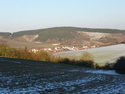Über Weinberge laufen wir auf Himmelstadt zu, wo wir dann den Main überqueren. |