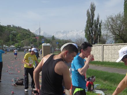 Wasserflaschen für die teilweise stark leidenden Marathonis.