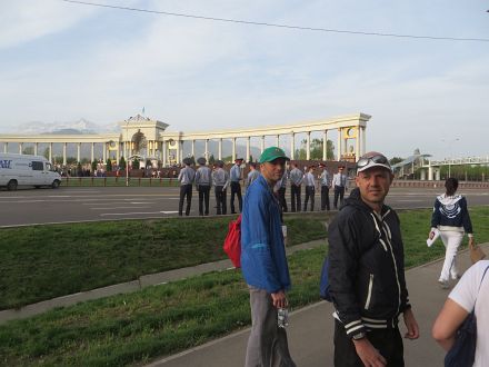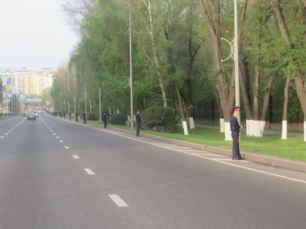 ging es auf der mit blühenden Blumen (Kasachstan ist Tulpenland) gesäumten