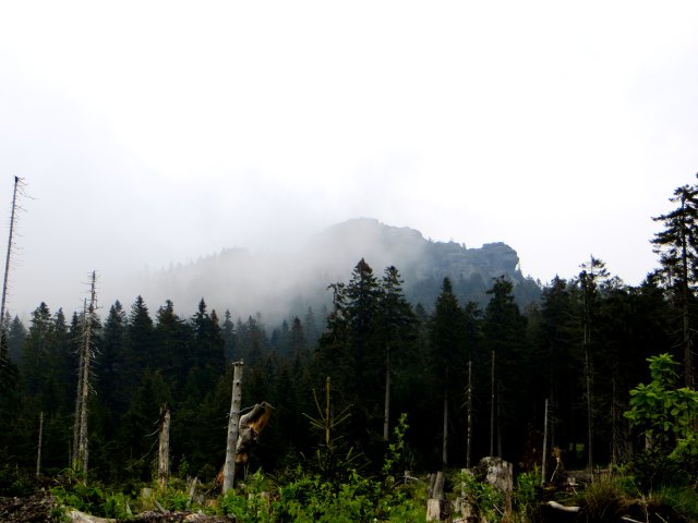 Der Bergnebel gibt kurz mal einen Blick auf den Arber frei