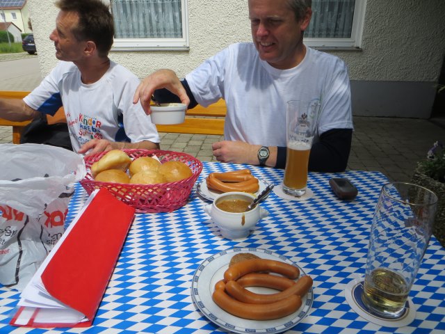 In Aholfing holen wir unser Mittagessen in einer urigen Gartenwirtschaft nach