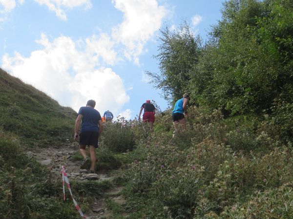 Die führenden Läufer kamen uns entgegen und in einer kleinen Ortschaft suhlten