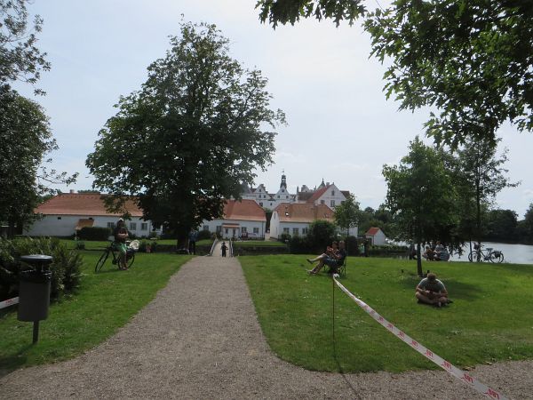 durch eine Allee weiter bis wir zu drei Viertel des Wasserschlosses umrundet
