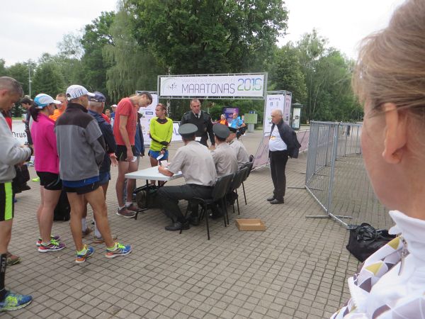 Passkontrolle eine Stunde vor dem Start des Druskininkai nach Grodno Friendship Marathons 2016