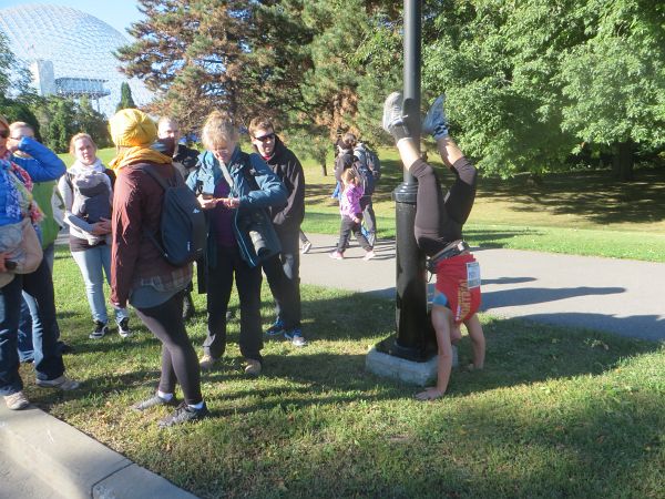 Sonntag, Renntag, mit der U-Bahn ging es auf die im St. Lorenz Strom liegende Insel St. Helene. Die Läufermassen wurden von der Polizei so gelenkt, dass es kein Gedränge an Bahnsteigen etc. gab - sehr gut organisiert. Auf dem Campus der Uni waren massenhaft Dixies aufgestellt, vor denen sich trotzdem lange Schlangen der ca. 3.700 Marathonis und ca. 13.700 Halbmarathonis bildeten. Tipp: Am Ausgang des U-Bahnhofes nicht rechts gehen sondern links und die Toilette des Sandman Hotels benutzen.