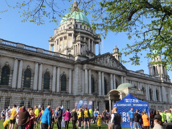 am Rathaus und Ziel im Ormeau Park. Es geht durch die Innenstadt, Wohngebiete,