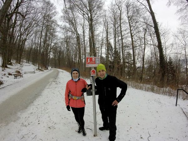Weiter ging es mit ein paar Höhenmetern zum warm werden in Richtung Veste. Dort konnten dann richtig Höhenmeter gesammelt werden, wir entschieden uns auch das eine oder andere Mal dazu, nur zu gehen. Dadurch kühlte ich aber auch weiter aus. Als wir oben an der Veste angekommen waren, stand mein Entschluss schon ziemlich fest, bei Kilometer 33 rauszugehen, schließlich verläuft hier die Strecke fast an der Rolf-Forkel-Halle vorbei. Nachdem es anschließend am Flugplatz (nicht der Segelflugplatz) vorbeiging, an dem auch Betrieb herrschte, aber auch eisige Temperaturen, war klar: Nein, diesen Marathon laufe ich nicht zu Ende, die warme Dusche war einfach zu nah. Somit gibt es von der letzten Schleife diesmal keinen Bericht mehr, aber vielleicht nächstes Jahr wieder.