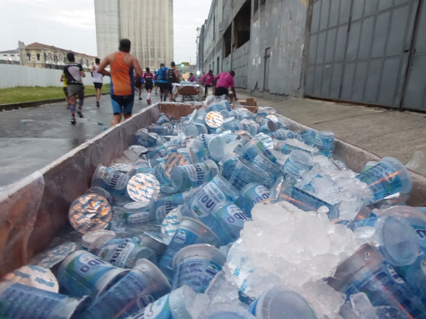zusätzlich eisgekühlte Gatorade in offenen Bechern und auch einmal bei km 33