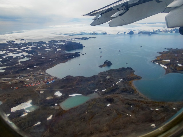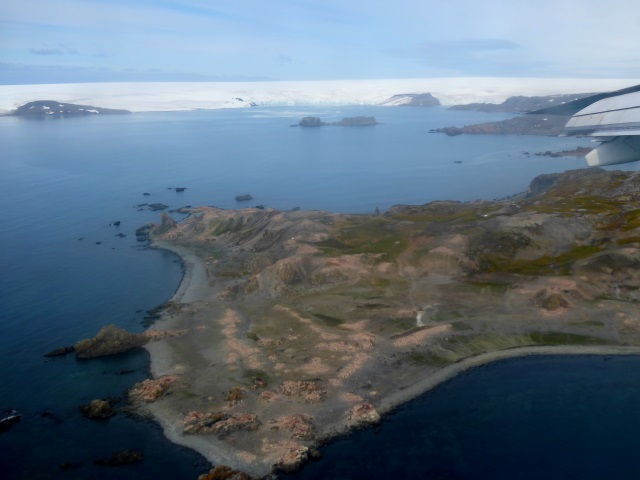 Am nächsten Morgen wurden wir zum Flugplatz gefahren und gegen 10.30 flogen wir in 1h50min nach KGI. Leider war der Himmel bewölkt, deshalb sahen wir Kap Horn nur andeutungsweise auf dem Rückflug. Nach einem tollen Landeanflug in einer Schleife über die russische, chilenische und chinesische Forschungsstation ging es zu Fuß zur russischen Station „Bellinghausen“. Wir hatten strahlenden Sonnenschein und kaum Wind bei etwa +5°C. In der Station zogen wir uns im Gemeinschaftsraum sogleich für den Marathon um.
