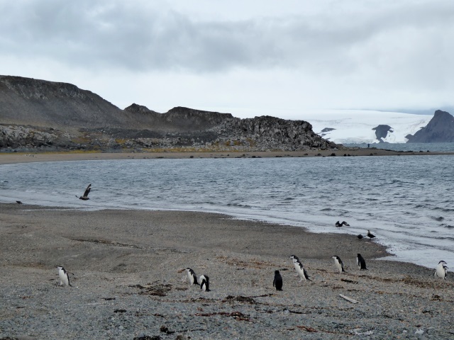 Hier schauten uns interessiert einige kleine Pinguingruppen zu, welche sich uns teilweise auch neugierig nährten. Vor und hinter uns sahen wir riesige Gletscher, die Laufstrecke selbst war allerdings eine Schnee – und Eisfreie feste Schotterstraße.