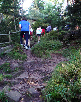 steiniger Pfad, im unteren Teil teilweise recht feucht, lässt fast jeden Läufer