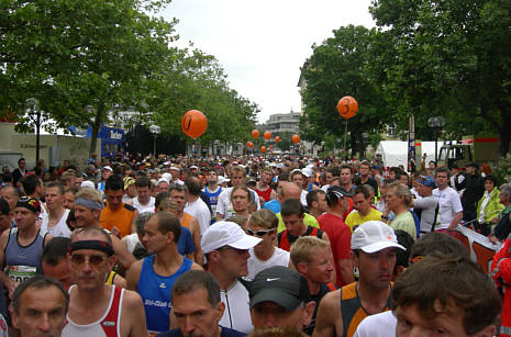 Gleich wird der Startschuss uns Marathonläufer auf die lange Strecke schicken |