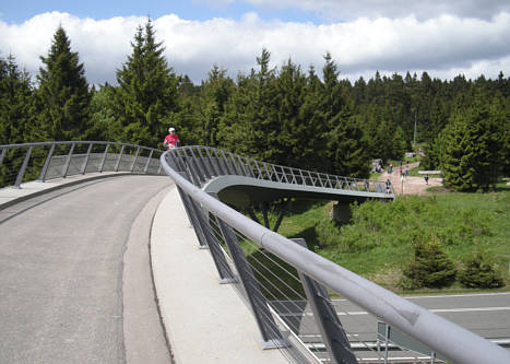 Fußgängerbrücke die darunter liegende Bundesstraße. Dahinter streben wir auf